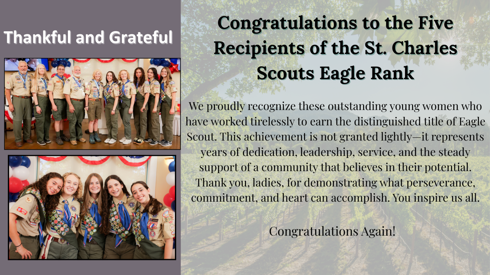 To everyone who contributed—whether behind the scenes or out front— thank you for your time, talent, and heart. Your efforts made all the difference. If we’ve missed anyone, please accept our sincere apologies and know how much we appreciate you.