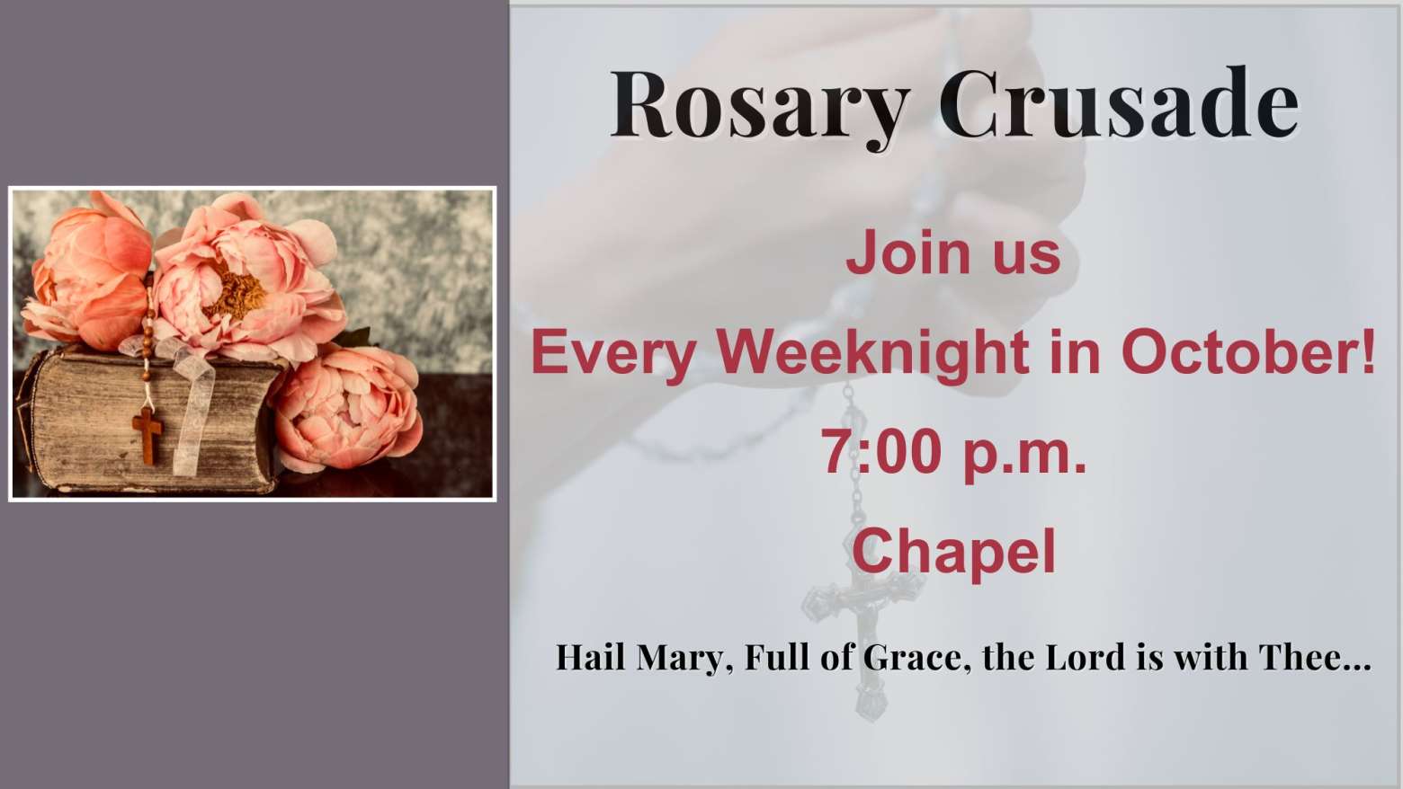 Be assured that I will be praying for each of you, entrusting our parish family to God’s loving care.