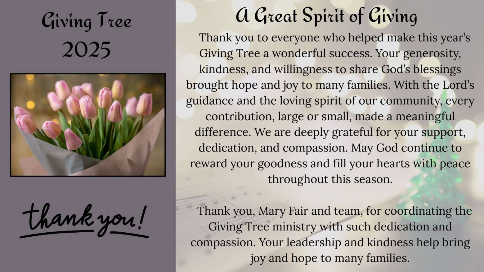 With hearts full of gratitude, we extend our sincere thanks to our Church staff, deacons, volunteers, and every member of our Church family. Your faithful service, quiet sacrifices, and generous contributions are a living testimony of God’s love at work among us. Each role you serve, seen or unseen, has helped grow our Church community of faith, compassion, and hope.