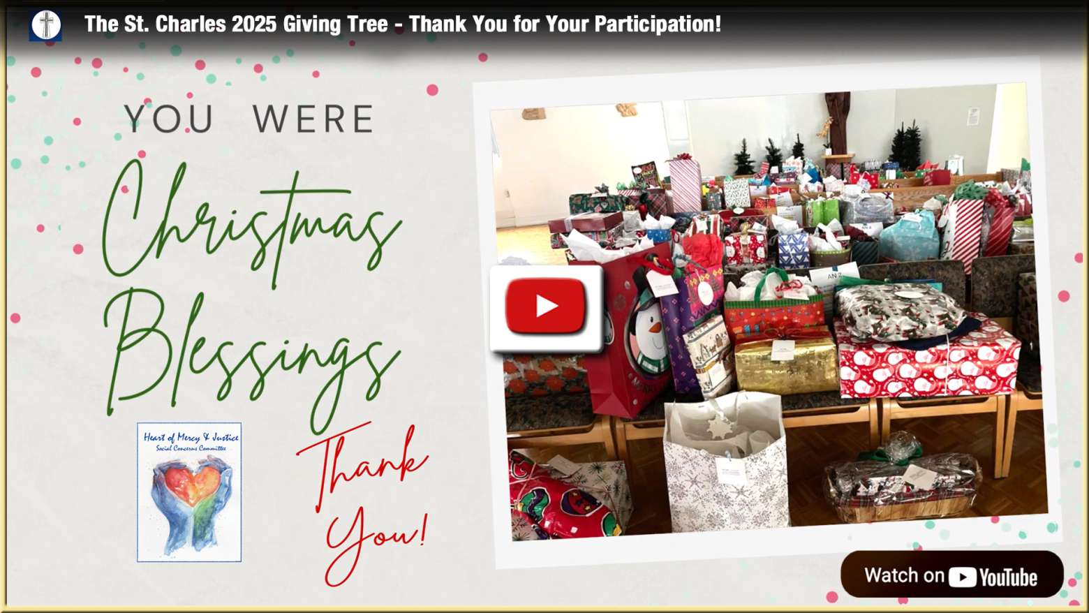 As we begin this New Year, the clergy and staff of St. Charles Borromeo join me in sending heartfelt blessings to you and your loved ones. This season invites us to pause, reflect, and give thanks—for God’s many gifts, for the moments that have shaped us, and for the beautiful community we share here at St. Charles.